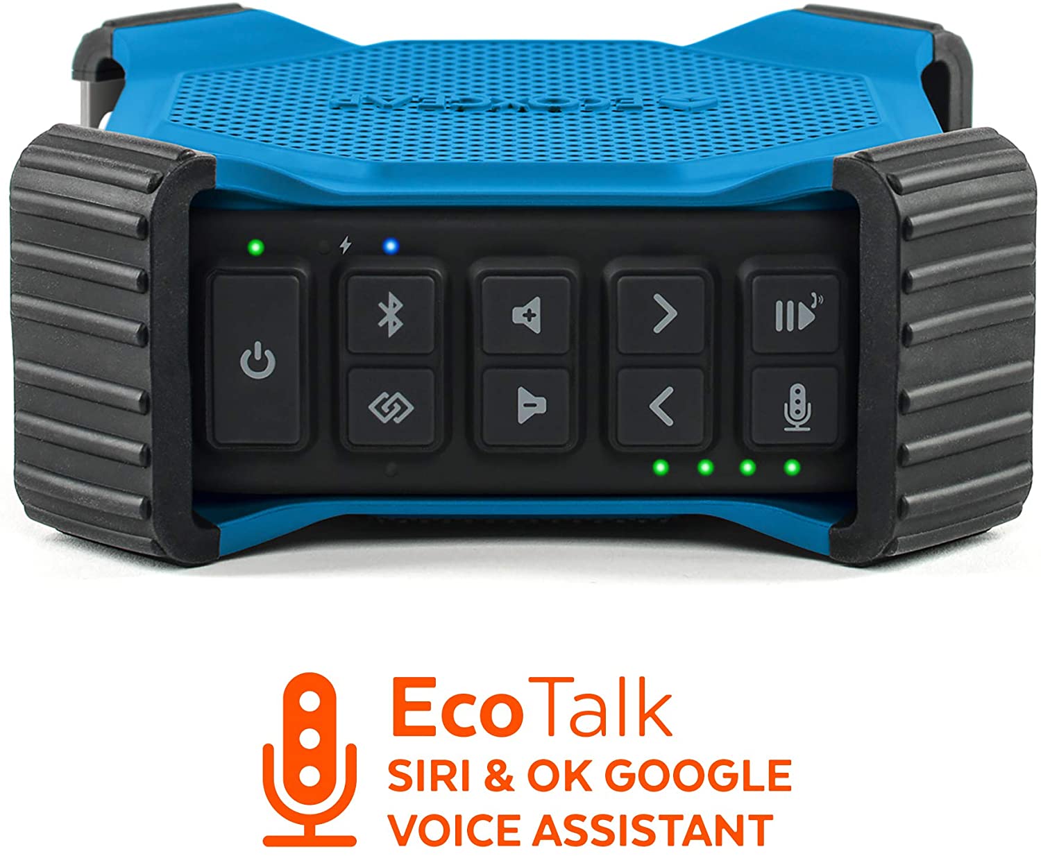 IPX67 waterproof Bluetooth speaker with compact and rugged styling. Featuring a booming 20W Max speaker and large passive sub-woofer, the EcoEdge has incredible sound in a portable package, and is still tough enough for every outdoor adventure. Includes an EcoTalk button for Google and Siri voice activation.